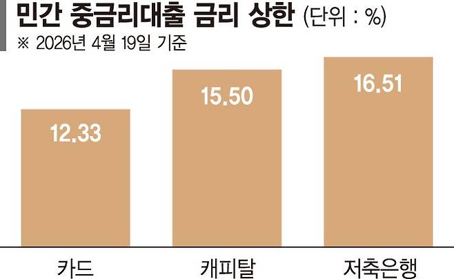 중금리대출은 신용점수 하위 50%를 대상으로 각 업권이 상한선(카드 12.33%, 캐피탈 15.50%, 저축은행 16.51%)보다 낮은 금리로 내주는 신용대출이다. 1금융권보다는 금리가 높지만 대부업보다는 저렴해 중·저신용자의 급전 마련 수요를 흡수하는 역할을 해왔다.