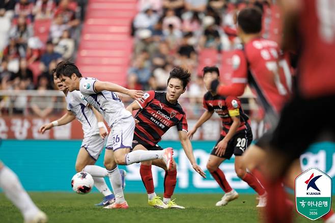 포항은 19일 포항스틸야드에서 열린 FC안양과의 '하나은행 K리그1 2026' 8라운드 경기에서 0대1로 패했다.
