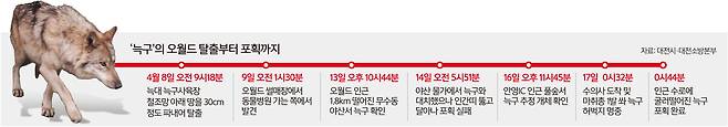 돌아온 늑구… “소고기 특식 먹고 회복 중”
