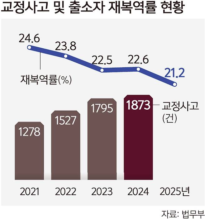 업무 부담으로 교도관의 정신건강 역시 적신호다. 법무부가 2024년 진행한 ‘교정공무원 정신건강 실태분석’ 결과 조사 참여자의 약 20%가 ‘정신건강 위험군’으로 파악됐다. 일반 성인보다 자살 계획 경험률은 약 2.7배, 자살 시도 경험률도 1.6배 수준이었다.