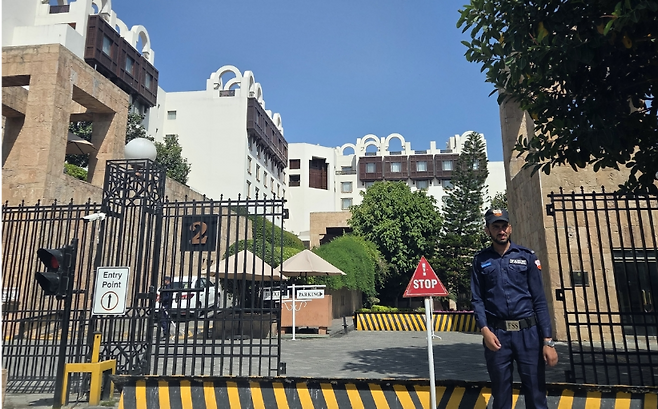 이슬라마바드에서 약하게라도 잡히던 휴대전화 로밍 신호가 호텔 건물 주변에서는 뚝 끊겼다. 보안 조치가 시행된 것으로 짐작됐다.