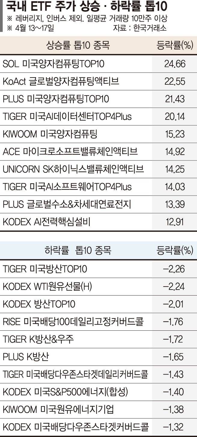 지난주 국내 상장지수펀드(ETF) 시장은 인공지능(AI) 모멘텀이 양자컴퓨팅 영역으로 확산되며 관련 테마 ETF가 수익률 상위권을 차지했다.