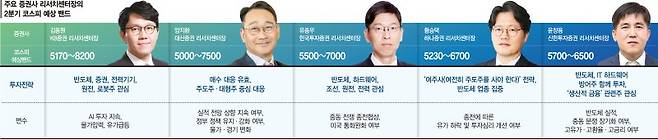 KB증권이 코스피 밴드 상단을 8200으로 제시한 데 이어 △대신증권 7500 △한국투자증권 7000 △하나증권 6700 △신한투자증권 6500 순이었다.