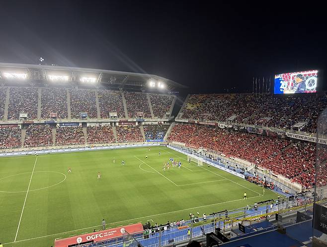 경기 시작하고도 팬들의 목소리는 엄청났다. 특히 수원삼성 팬들 특유의 응원문화가 경기 내내 압도적이었다. 이에 답하듯 OGFC 팬들의 목소리도 경기가 끝을 향할수록 더욱 커졌다.