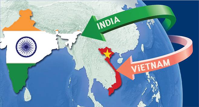 인도는 15억 명에 달하는 세계 최대 인구와 세계 4위의 경제 규모, 연 7%의 경제성장을 하는 ‘기회의 땅’으로 꼽힌다. 삼성전자, LG전자 등 국내 전자업계와 현대차·기아 등 자동차 사업의 핵심 수요처다. 한국 기업들은 인도에서 냉장고, 세탁기 등 주요 가전 점유율이 합계 50%에 달하고 TV에서도 프리미엄 수요 중심으로 성장하고 있다. 특히 시장조사업체 IDC에 따르면 지난해 상반기(1∼6월) 7만 루피(약 110만 원) 이상 프리미엄 스마트폰 시장에서 삼성과 애플의 점유율은 각각 49%, 48%로 접전 양상을 나타냈다.