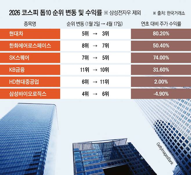 ‘시총 톱10’ 중 8곳 순위 뒤집혀⋯삼전·SK하닉 빼고 다 바뀌었다