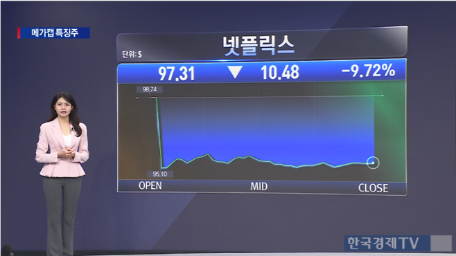 17일(현지시간) 뉴욕 증시에서 넷플릭스는 전장보다 9.72% 하락한 97.31달러에 거래를 마쳤다.