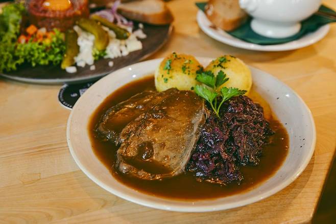 자우어브라텐은 와인에 재운 소고기를 부드럽게 익힌 음식으로, 쫀득한 감자 덤플링과 자색 양배추절임이 곁들여진다. 새콤한 갈비찜 같아 약간 생소하지만, 먹다 보면 드레스덴과 좀 더 가까워진 기분이 들 것이다.