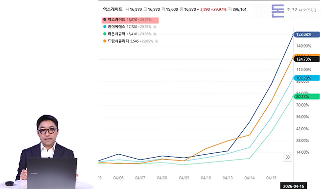 20일 한국거래소에 따르면 보안솔루션 기업 엑스게이트는 이날 오전 10시 2분 현재 전 거래일보다 22.95% 오른 1만8430원에 거래중이다. 전 거래일 11.14% 하락하며 상한가 행진이 멈추는듯 했으나, 재차 급등하기 시작한 것이다. 엔비디아가 지난 14일(현지시간) 양자컴퓨터의 기술적 문제를 개선할 수 있는 AI 모델 제품군 ‘아이징’(Ising) 공개한 데 영향을 받았다.