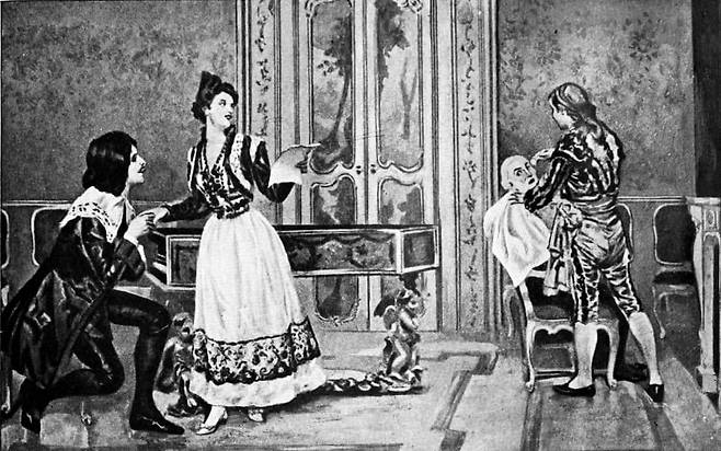 프랑스 극작가 피에르 보마르셰(Pierre-Augustin Beaumarchais, 1732~1799)의 ‘피가로 3부작’이라는 연극 시리즈를 바탕으로 30년의 시간차를 두고 조우하게 되는 것. 모차르트가 2부에 해당하는 ‘피가로의 결혼’을 세상에 내놓은 게 1816년, 그리고 1부를 로시니가 1846년 발표하는데 그게 ‘세비야의 이발사’다. 그러니까 ‘피가로의 결혼’은 ‘세비야의 이발사’의 시퀄(Sequel, 속편)이고, ‘세비야의 이발사’는 ‘피가로의 결혼’의 프리퀄(Prequel, 전편)에 해당한다. 참고로 3부는 ‘죄 많은 어머니’로 거의 상연되지 않는다. 세비야의 이발사는 피가로. 귀족 처녀 로시나를 보고 한눈에 반한 알마비바 백작은 그녀의 완고하고 음흉한 후견인 바르톨로의 방해로 난관에 처한다. 이때 피가로가 여러 기지를 발휘해 여러 소동을 겪으며 둘을 결혼시킨다는 이야기다.