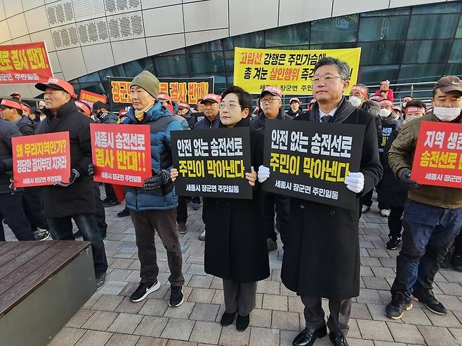 | ▲ 지난해 12월 9일 장군면 주민들과 함께 ‘신계룡~북천안 송전선로 건설사업' 반대 시위를 벌이고 있는 안신일 의원 |