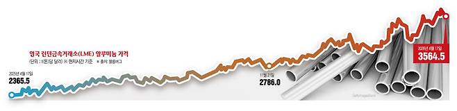 중동산을 쓰지 않더라도 글로벌 알루미늄 가격 자체가 상승세를 보이고 있어 국내 업체의 부담도 커지는 양상이다.