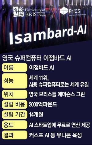 영국 런던에서 서쪽으로 기차 2시간을 달려 도착한 브리스틀 에머슨스 그린. 이곳에 위치한 국립복합재센터(NCC)는 영국 인공지능(AI) 핵심 인프라스트럭처로 주목받고 있다. 세계 11위 규모 슈퍼컴퓨터 '이점바드AI'가 자리하고 있어서다. 마크 이점바드는 영국인이 가장 존경하는 19세기 공학자로 대서양 횡단 기선, 현수교 등이 모두 그가 최초로 개발한 것이다.