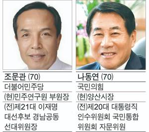 국민의힘 경남도당은 나동연(70) 양산시장을 최종 후보로 20일 확정했다. 나 시장은 '세대교체'를 주장해온 한옥문(61) 전 양산시의회 의장과 결선 투표를 거친 끝에 '양산 최초 4선 시장' 도전에 나서게 됐다. 앞서 더불어민주당은 김일권(74) 전 양산시장과 조문관(70) 민주연구원 부원장이 결선 투표를 진행한 결과, 조 부원장을 최종 후보로 지난 19일 공천했다.