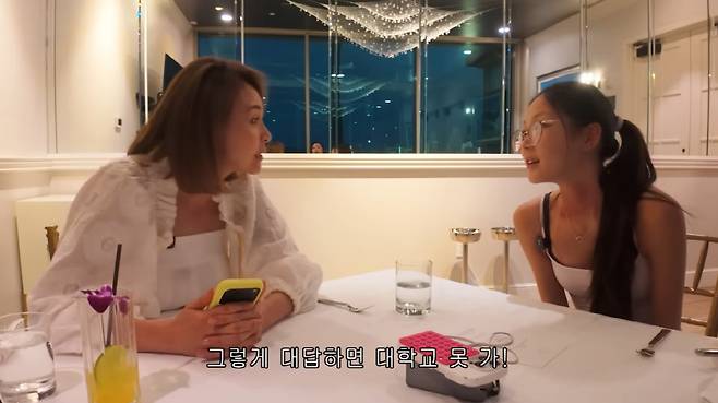 사춘기다운 단순한 표현에 야노시호는 "그렇게 대답하면 대학교 못 간다. '재미있었다' 그렇게 말하면 대학교 갈 때 떨어진다"라면서 또다시 잔소리를 시작, 결국 사랑 양은 한숨을 내쉬어 웃음을 터뜨렸다