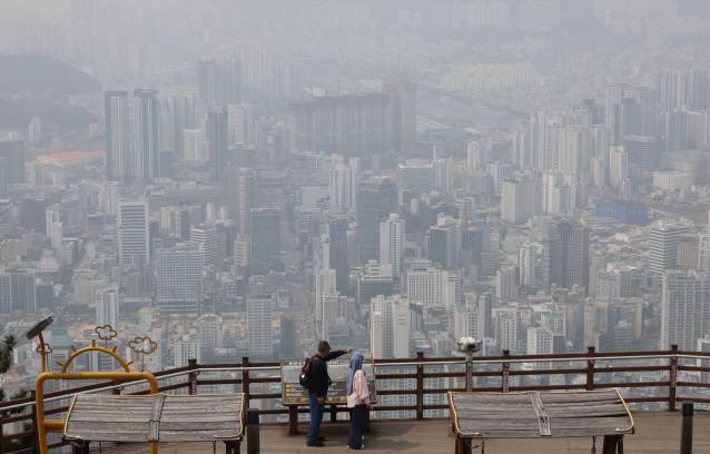 [부산 황령산 전망대(서면방면)에서 바라본 도심이 뿌옇게 보인다. (연합뉴스 자료사진)]