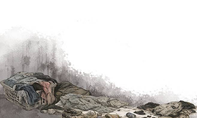 “몇 년을 이렇게 지내니까 책임감도 더 생기더라고요.” 어색하게 웃으며 말하는 수빈의 등 뒤로 서랍장 위에 놓인 빨래 바구니가 보였다. 세 식구의 묵은 빨래가 천장에 닿을 정도로 쌓여 위태로웠다. 싱크대 안에는 언제 마지막으로 사용했는지 짐작하기 어려운 식기가 가득했다. 현관문 바깥쪽에는 1만1000원 남짓한, 2026년 2월 수도요금 납부를 재촉하는 안내장이 붙어 있었다. 유통기한이 한참 지난 우유 대여섯 박스가 인근에 쌓여 있었다. 냉장고 안에는 먹다 남은 음식이 배달 용기째 가득했다. 수빈이 쓰는 작은 방 안에는 텅 빈 생수병 서너 개가 굴러다녔다.