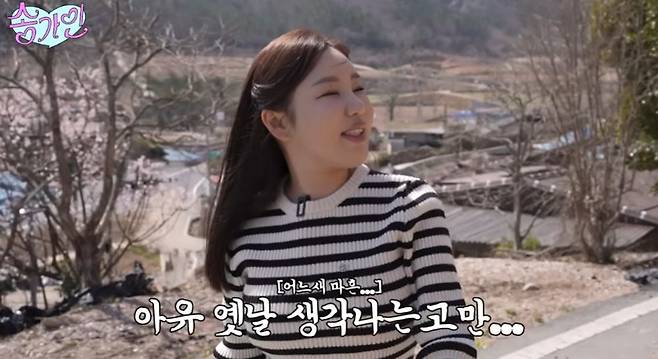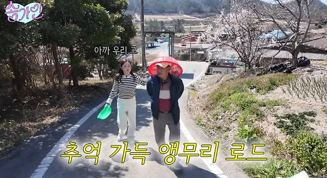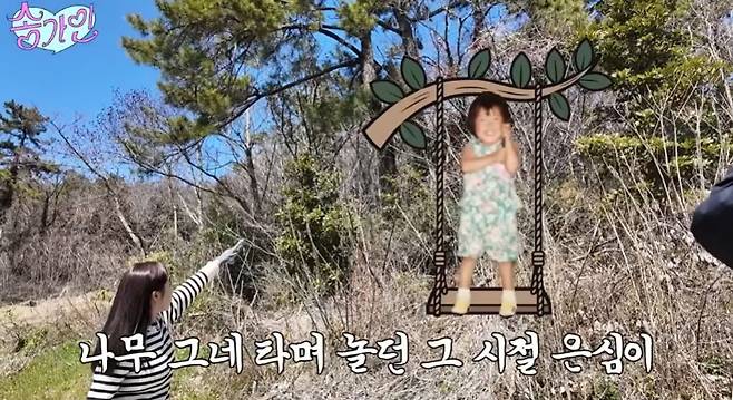 조연환 씨와 쑥을 캐러 향하는 길, 송가인은 "내가 어릴 때 여기 묘지에서 놀았다. 밧줄로 나무 그네를 만들어 타고 놀곤 했다. 옛날 생각이 난다"며 추억에 잠긴 모습을 보였다.