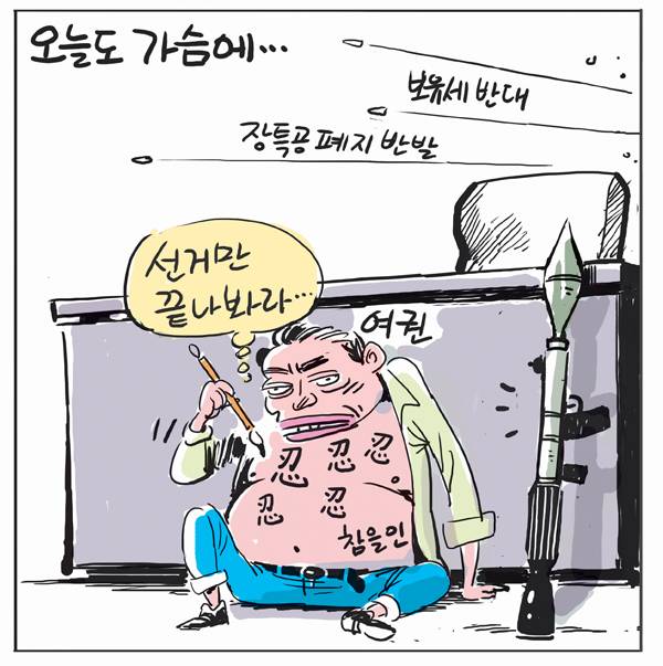 [경인만평] 오늘도 가슴에… 이공명 2026. 4. 20. 19:40 음성으로 듣기 음성재생 설정 이동 통신망에서 음성 재생 시 데이터 요금이 발생할 수 있습니다. 글자 수 10,000자 초과 시 일부만 음성으로 제공합니다. 남성 여성 느림 보통 빠름 음성 재생하기 닫기 음성 재생 중지 번역 설정 번역beta Translated by kaka i 한국어 - English 영어 日本語 일본어 简体中文 중국어 Nederlands 네델란드어 Deutsch 독일어 Русский 러시아어 Malaysia 말레이시아어 বাঙ্গোল ভাষা 벵골어 tiếng Việt 베트남어 Español 스페인어 اللغة العربية 아랍어 Italiano 이탈리아어 bahasa Indonesia 인도네시아어 ภาษาไทย 태국어 Türkçe 튀르키에어 Português 포르투갈어 Français 프랑스어 हिन्दी 힌디어 닫기 번역중 Now in translation 글씨크기 조절하기 글자크기 설정 파란원을 좌우로 움직이시면 글자크기가 변경 됩니다. 가 매우 작은 폰트 작은 폰트 보통 폰트 큰 폰트 매우 큰 폰트 가 이 글자크기로 변경됩니다. (예시) 가장 빠른 뉴스가 있고 다양한 정보, 쌍방향 소통이 숨쉬는 다음뉴스를 만나보세요. 다음뉴스는 국내외 주요이슈와 실시간 속보, 문화생활 및 다양한 분야의 뉴스를 입체적으로 전달하고 있습니다. 닫기 인쇄하기 /이공명 Copyright © 경인일보 All rights reserved. 무단전재 및 재배포 금지.