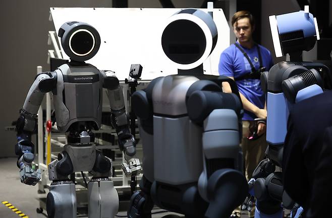 | ▲ CES 개막 이틀째인 7일(현지시간) 미국 네바다주 라스베이거스 컨벤션센터(LVCC) 현대자동차 부스에서 로봇 아틀라스가 이동하고 있다. |