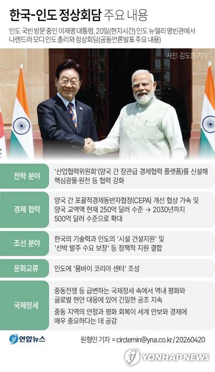 [그래픽] 한국-인도 정상회담 주요 내용
