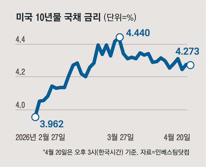 채권 투자에 대한 과도한 낙관론을 경계해야 할 시점이란 조언도 나왔다. 안재균 한국투자증권 연구원은 “미국과 이란의 휴전 협상 이후 형성된 낙관적 시각의 추가 확산을 경계해야 할 시점”이라며 “강한 금리 하락세에 대한 기대보다 가격 매력이 높은 구간을 중심으로 한 대응 전략이 유효하다”고 설명했다.