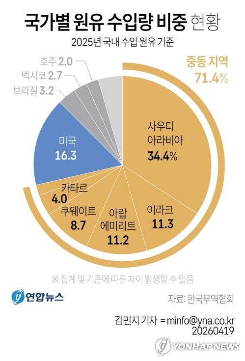 지난해 기준 한국의 원유 수입량 중 쿠웨이트산이 차지하는 비율은 약 10%였다.