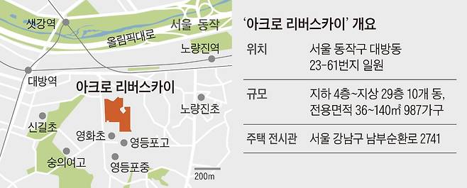 서울 서남권을 대표하는 재개발 사업지인 노량진뉴타운에서 DL이앤씨가 다음 달 첫 분양에 나선다. 동작구 대방동 23-61번지 일원에 건설하는 ‘아크로 리버스카이’가 그 주인공이다. 지하 4층~지상 29층 10개 동, 전용면적 36~140㎡ 987가구 규모로, 285가구가 일반 분양된다. 노후 주택과 상가가 밀집한 노량진뉴타운의 정비 사업이 마무리되면 9200여 가구 규모 미니 신도시급 주거 단지로 변모하며 신흥 주거지로 각광받을 것으로 기대된다.