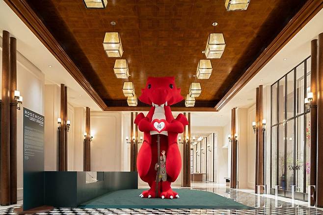 붉은 용의 한 가운데는 ‘복(福)’이 쓰인 하트 램프와 어린아이 형상이 있었다. 사람들은 연신 아이 형상의 조각에 손바닥을 대고 하트 램프에 불을 켜며 즐거워했다. 로즈우드가 ‘A Sense of Place®’ 철학에 기반해 올해 아트 먼스 프로그램으로 직접 커미션한 이 조형 작품은 네덜란드 아티스트 프랭키(Frankey)의 ‘러키 드래곤(Lucky Dragon)’이다. 유머로 이룬 예술은 누구에게나 친근한 법. 그 앞에서 관람자는 직관적으로 손을 내밀게 된다.