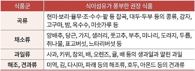 식이섬유는 장내 수분을 흡수해 대변을 부드럽게 하고 장운동을 촉진해 변비를 예방한다. 또한 장내 발암물질과의 접촉 시간을 줄여 대장 건강에도 긍정적인 영향을 미친다.