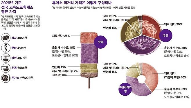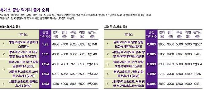 핫바 5천원, 라면 8천원… 전국 휴게소 음식 가격 지도