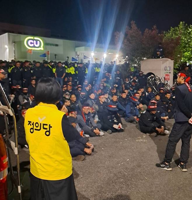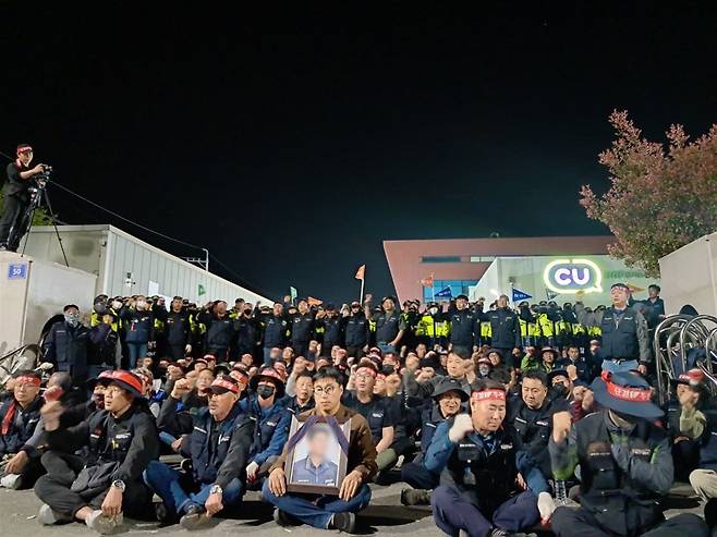 "공권력에 의한 죽음" 진주 CU물류센터 앞 노동자들 울분