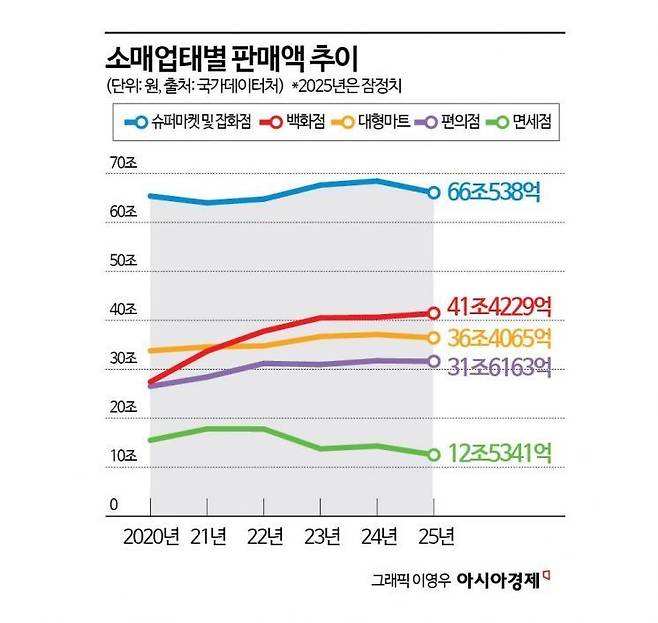 21일 산업통상자원부의 '2025년 주요 유통업체 매출동향'에 따르면 국내 주요 백화점 매출은 지난해 7월부터 올해 2월까지 8개월 연속 성장세를 이어갔다. 백화점은 지난해 연간 4.3%의 매출 증가세를 기록하며 오프라인 유통업체 중 가장 높은 상승률을 보였다. 최근 수년간 온라인 시장이 급성장하면서 백화점 업계도 성장 둔화 우려가 나왔지만, 명품 판매가 급증하면서 역대급 실적을 기록했다.