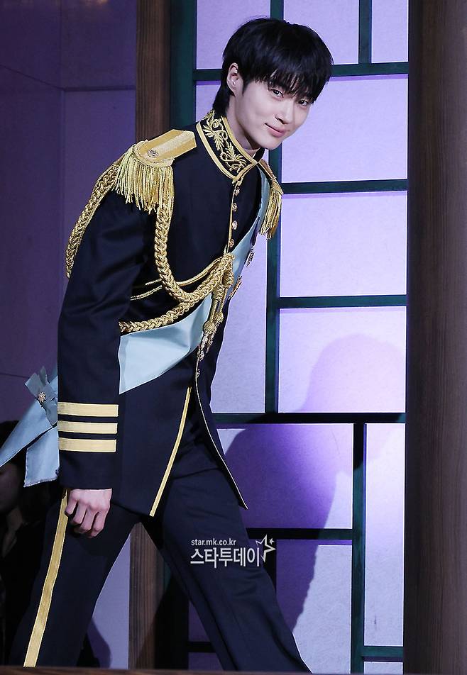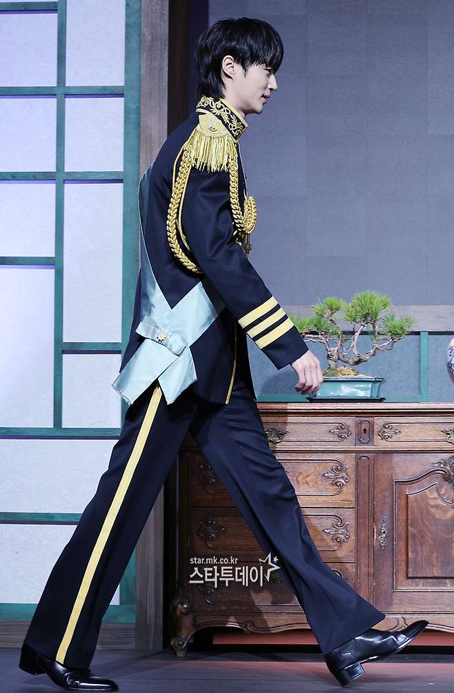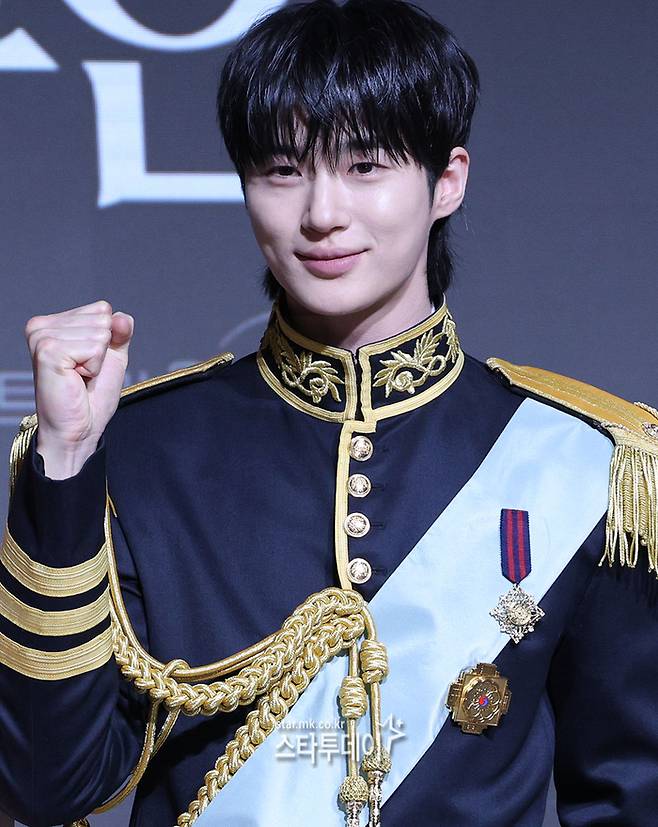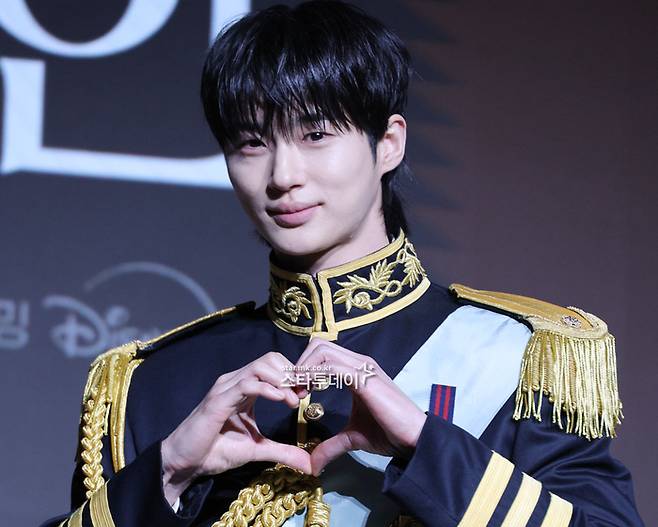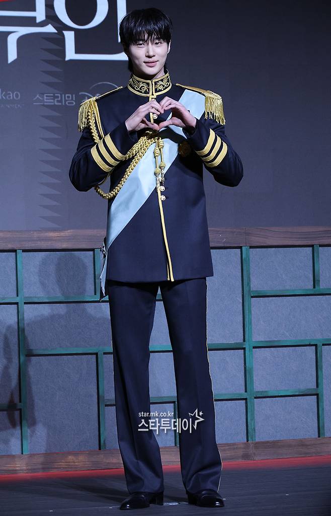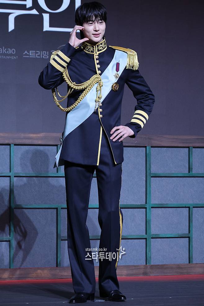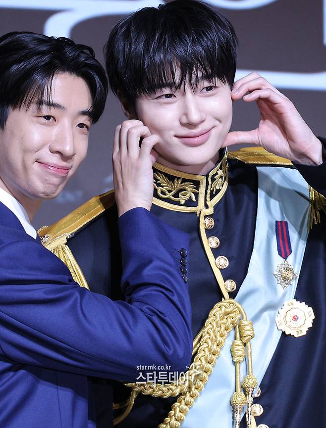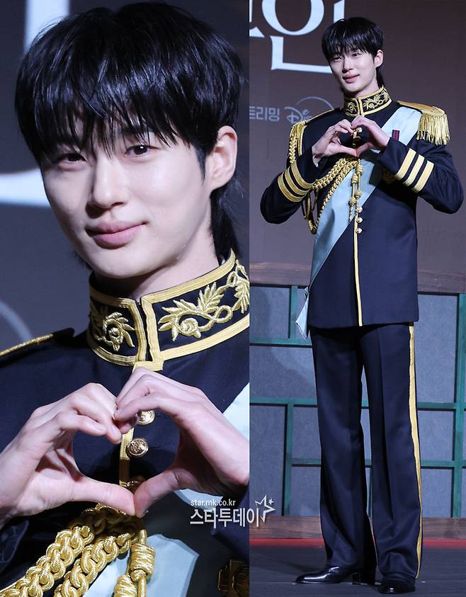 2년 만에 드라마로 돌아온 변우석은 이날 단정한 헤어에 금장 장식이 더해진 제복으로 왕실 분위기를 연출했다. 여기에 손하트, 볼하트 등 다양한 포즈를 취하며 화기애애한 현장 분위기를 만들었다.