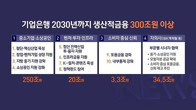 앞서 기업은행은 2026년 금융위원회 업무보고에서 2030년까지 5년간 총 300조 원 이상의 생산적금융 공급을 추진한다고 밝혔습니다.