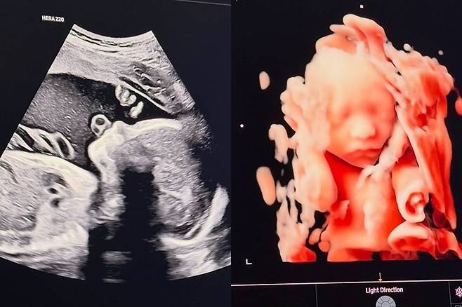 공개된 사진 속에는 태아 초음파가 담겨있다. 3D 초음파로 구현된 태아의 모습은 또렷한 이목구비로 눈길을 사로잡았다.