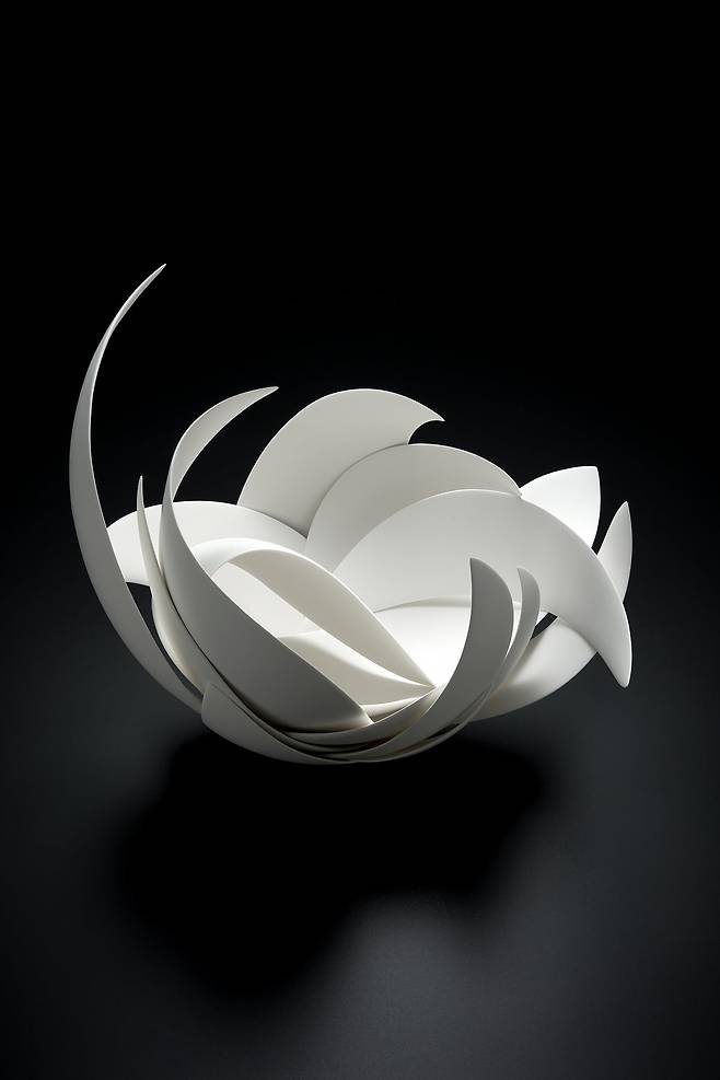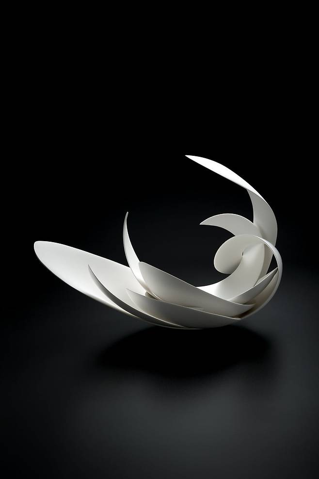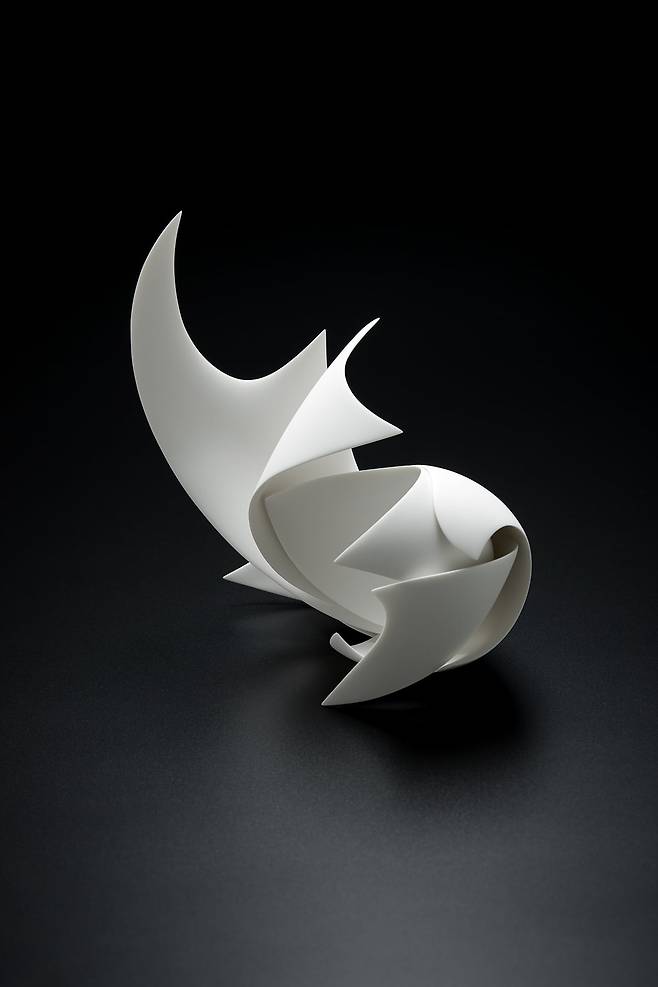 도자기는 1,200∼1,300℃에서 그 이상의 온도로 구워야 본연의 색과 선, 형태가 나온다. 고온에 구울수록 얇고 가볍다. 고온 소성 후에 사포질로 조각의 표면을 다듬는 과정을 거쳐야 작가가 선호하는 강물에 씻긴 부드러운 조약돌의 표면과 같은 광택과 질감. 나아가 마치 나비의 날개짓마냥 공기 중에 부유할듯한 가벼움, 동세가 느껴진다.