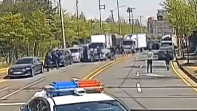 화물연대가 공개한 영상을 보면 사고가 발생한 어제(20일) 오전, 조합원 수십 명이 물류센터 앞에서 출차를 막고 있었습니다.