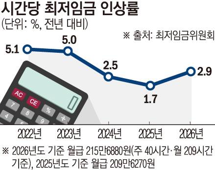 경영계는 고유가·고환율에 인건비 부담까지 겹치며 꾸준히 우려를 표명하고 있다. 류기정 한국경영자총협회(경총) 전무는 “올해 최저임금 심의는 엄중한 경제 현실과 현장의 지불 여력이 충분히 반영될 수 있는 방향으로 이루어져야 할 것”이라고 강조했다.