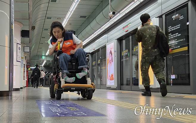 그는 '활동가'에서 '정치인'으로 삶의 부제를 바꾸려 한다. 조 예비후보는 "거리의 투쟁을 정치 공간으로 밀어 넣고 장애인에게 도래하지 않은 새로운 민주주의를 만들기 위해" 서울시의원 출마를 결심했다. 쉽게 나아간 적은 없지만, 그렇다고 멈춘 적도 없다던 그의 삶. 휠체어를 타다 덜컹거려도 다시 중심을 잡는 그의 출근길을 <오마이뉴스>가 따라가 봤다(원활한 의사소통을 위해 서면 인터뷰를 병행했습니다. - 기자 주).