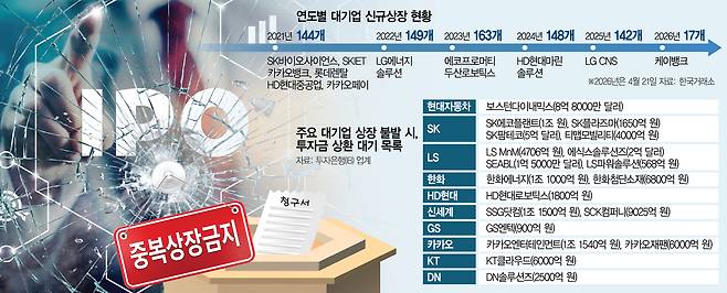 다만 그룹사마다 자금 사정이 제각각이라 상환 재원을 마련하는 과정에서 양극화가 나타날 수 있다는 관측이 제기된다. IB 업계 관계자는 “중복상장이 일괄 금지돼도 실적이 견고하고 성장성이 뚜렷한 계열사라 판단되면 FI들도 목표 수익률을 관리하는 차원에서 기다릴 여지가 있다”면서 “이 경우 모회사들은 자체 자금으로 투자금을 갚거나 배당금을 늘려 대응하거나 여건이 되지 않으면 상환 협상이 가속화될 것”이라고 했다.
