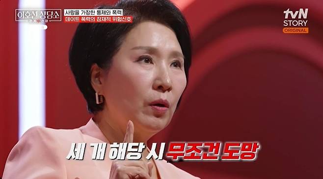 세 개 해당 시 무조건 도망가야 한다고. 이호선은 "(위험 신호를) 사랑 때문이라고 생각하기 쉽다"라며 "6가지 공통점은 사생활이 없어진다는 것"이라고 밝혔다.