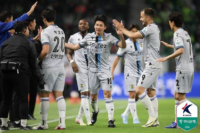 인천유나이티드는 21일 오후 7시 30분 전주월드컵경기장에서 치러진 전북현대와의 하나은행 K리그1 2026 9라운드 경기에서 2-1 역전승을 거뒀다.