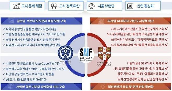 이를 위해 재단은 케임브리지대 맥스웰 센터, 연세대학교와 컨소시엄을 구성했다. 재단은 이번 연구를 통해 서울의 물리적 환경과 AI 기술을 결합한 미래도시 모델의 기준을 제시하고 글로벌 확산 기반을 마련할 방침이다.