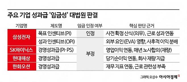 SK하이닉스, 한화오션, 현대해상 등 주요 대기업 성과급은 임금성을 부정당한 것과 달리 삼성전자의 '목표 인센티브(PI)'만 예외적으로 인정받았다.