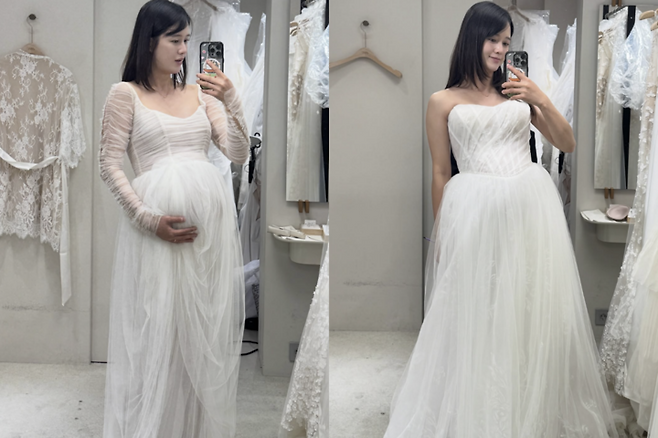 남보라는 드레스 사진과 함께 "하늘하늘 떨어지는 쉬폰부터 풍성한 드레스, 우아한 실크까지 전부 너무 예쁘다"며 만족감을 표했다. 이어 그는 "콩알(태명)아 우리 사진 예쁘게 찍는 거다"라며 뱃속의 아이를 향한 애정을 담았다.