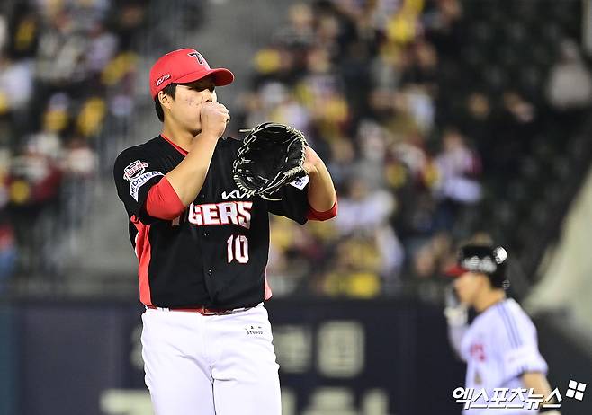 KIA 타이거즈 우완 영건 김태형이 5이닝을 채우지 못하고 교체됐다.