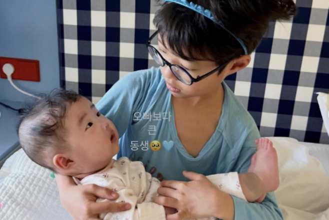 또 이시영은 딸을 안고 있는 아들의 모습 위로 "오빠보다 큰 동생이다"라는 글을 덧붙이며 아들의 듬직한 면모를 자랑했다.