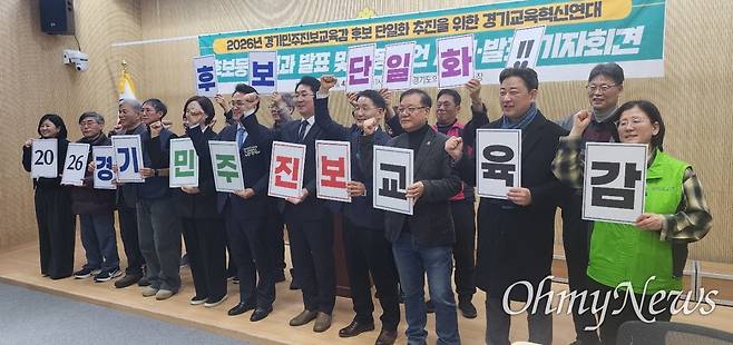 | ▲ 경기도의회 브리핑룸에서 열린 경기도 교육감 민주진보 단일후보 선출 결과 발표 기자회견 |