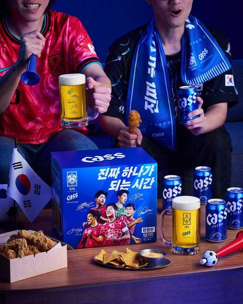 카스는 월드컵 개막 전후로 TV 광고, 한정판 패키지, 굿즈, 지역 상권 협업 프로모션 등을 순차적으로 선보일 계획이다. 대표팀 경기일에는 소비자 참여형 응원 이벤트도 마련할 예정이다.